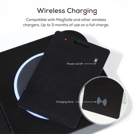 • Wireless Charging: Easily charge your wallet finder with any wireless charger, providing up to 5 months of continuous use when fully charged. For your convenience, we provide a charging device to ensure you can always keep your battery level up.